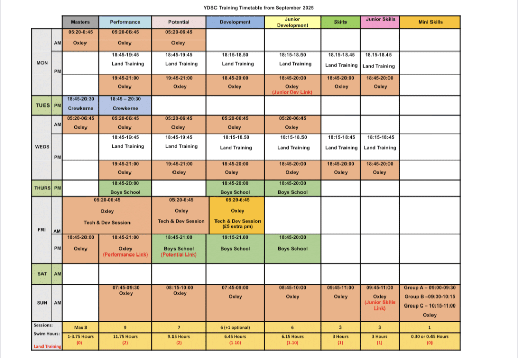 At YDSC we train all through the year except for the odd bank holiday. We train over half term and normally run a reduced programme throughout the summer holidays. If for whatever reason we are not training we will let you know through email.